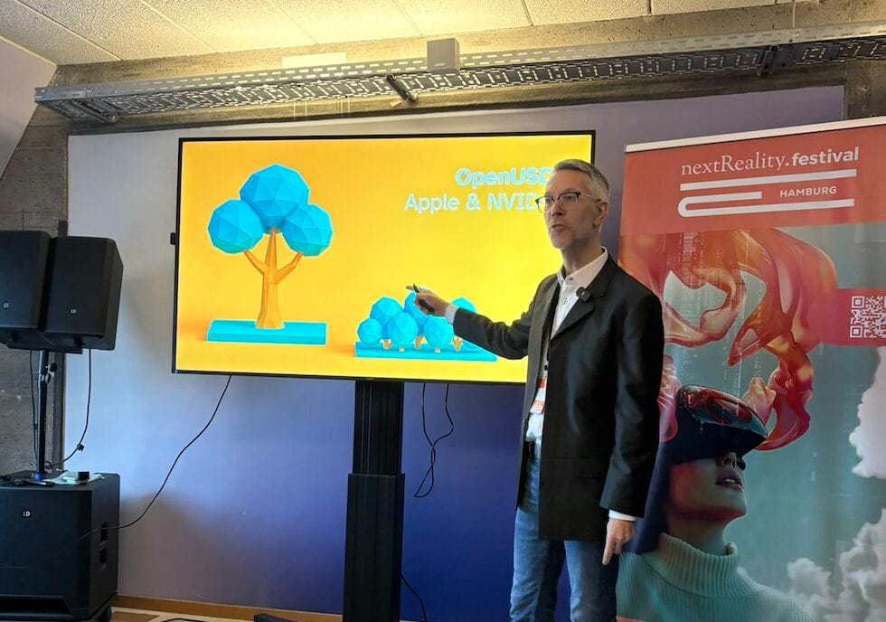 Vortrag zu OpenUSD und 3D-Datenlogik im Vertrieb: NextReality.Festival, Hamburg. Praxisorientierter Fachvortrag – keine Produktpräsentation.