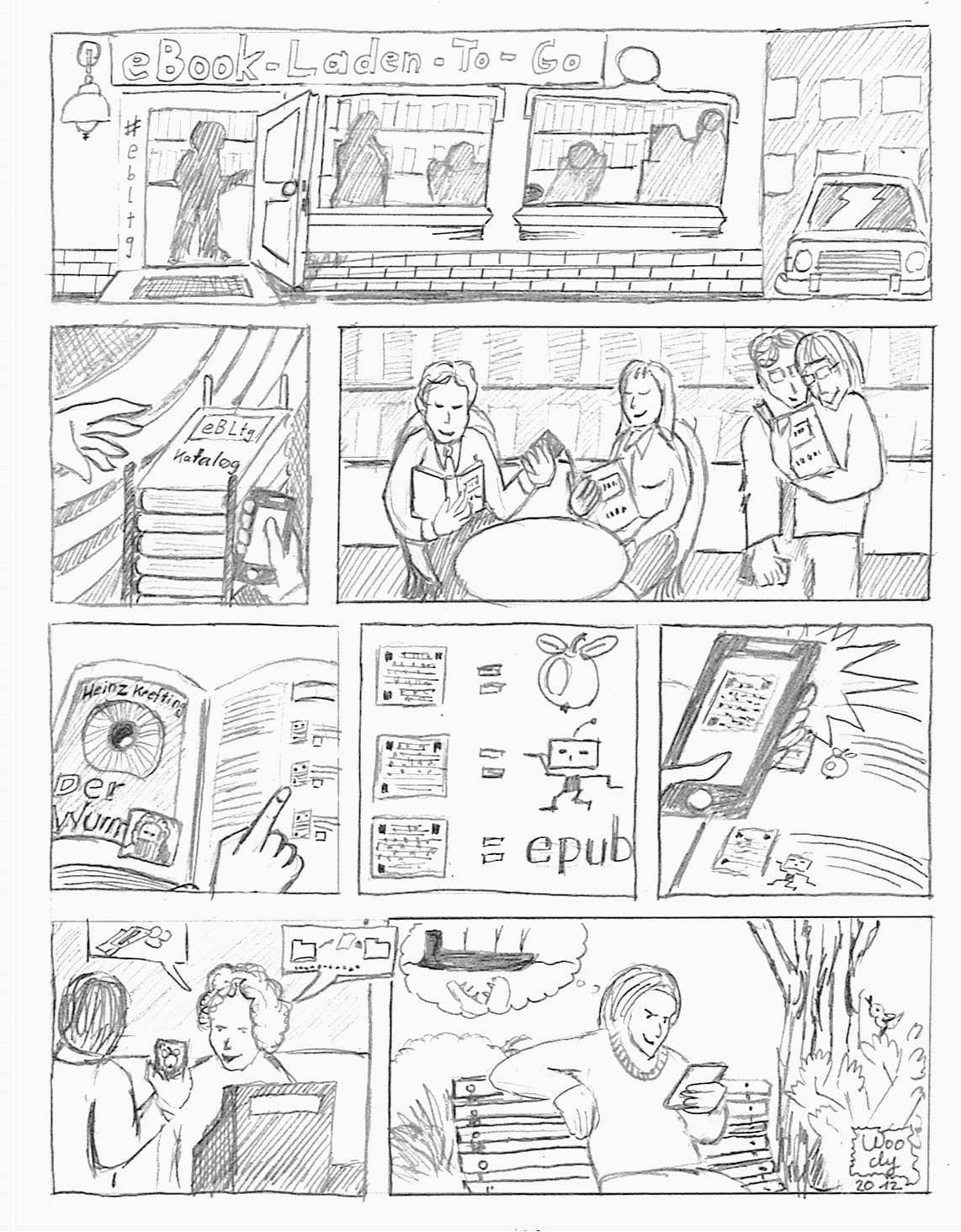 Die Idee war: eBooks kaufen wie vom Menü bestellen. Der Laden ist das Bild. Der Kauf passiert woanders. Wollte ich eher als eine Art Kunstprojekt statt kommerzieller Testlauf im Unperfekthaus umsetzen. Hatte sogar schon die Zusage vom Eigentümer Reinhard Wiesemann.